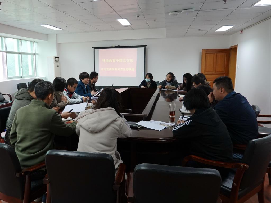 按照学校关于组织学习《省委教育工委 省教育厅关于深入学习杨明同志先进事迹》的通知,开放学院党支部于11月26日组织全体党员进行了集中学习。