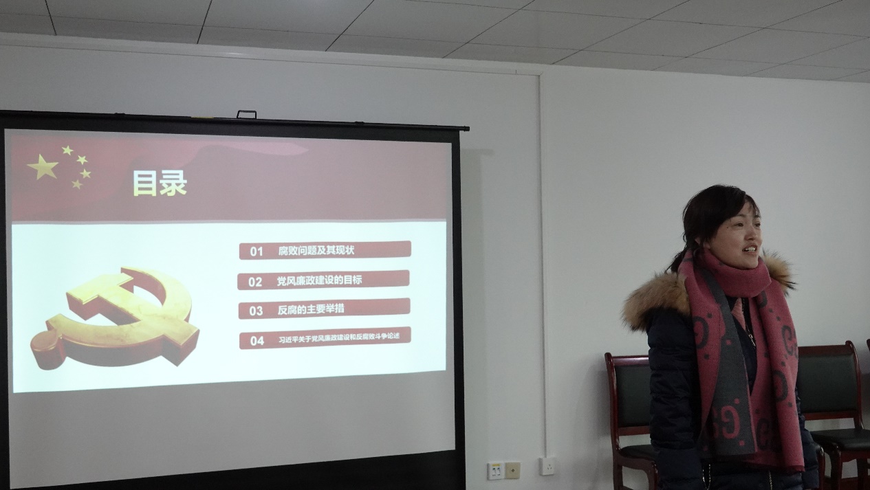 为了进一步增强党员同志廉洁自律、敬畏法纪戒尺、依法依规办事的初心和牢记为人民服务的宗旨使命,2020年12月15日下午,八鸽岩党总支书记戴鸣娟以《欲影正先端其表 欲自廉先正其身——党风廉政建设和反腐败斗争》为题上专题党课。