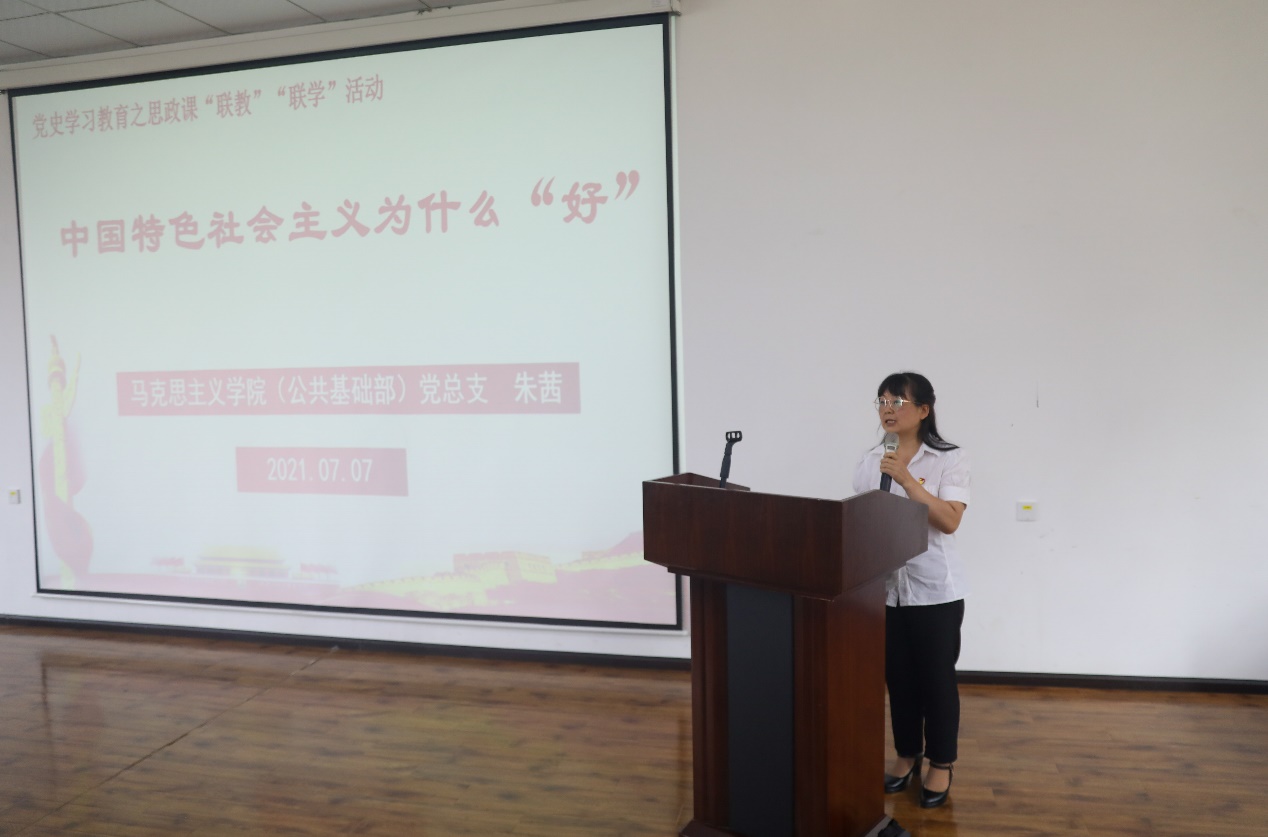 马克思主义学院朱倩老师以《中国特色社会主义为什么好?》为题,从中国共产党的四项优势:正确发展道路、科学理论体系、鲜明制度优势、厚重的文化自信来阐述中国特色社会主义的成功。