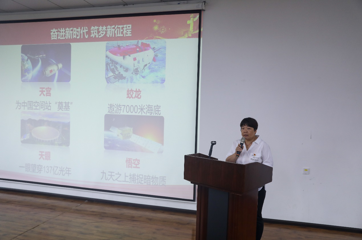 开放教育学院谭永凤以《奋进新时代,筑梦新征程》为题,从中华民族的昨天:“雄关漫道真如铁”、中华民族的今天“人间正道是沧桑”、中华民族的明天“长风破浪会有时”回顾了党领导中华民族逐步实现伟大复兴。
