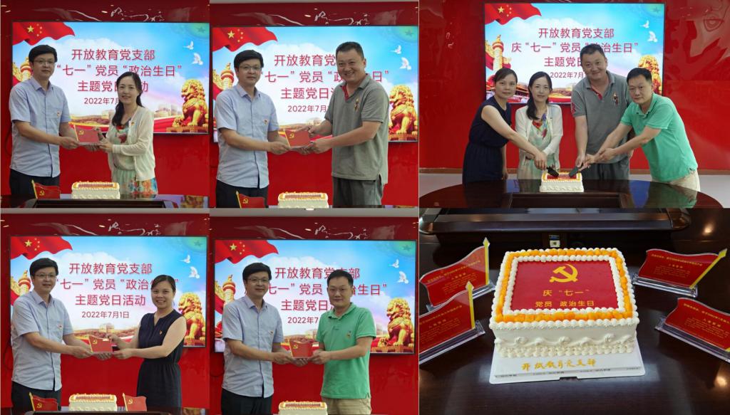 为进一步强化党性修养,提高党员的政治意识和身份意识,切实发挥党员先锋模范作用,7月1日,开放教育党支部在八鸽岩校区16楼党员活动室开展了“共过政治生日 永葆入党初心”的主题党日活动,为支部上半年入党的同志过“政治生日”,活动由党支部书记谭永凤同志主持,支部全体党员、八鸽岩校区党总支书记赵勇同志及民主党派代表张小丰老师参加。