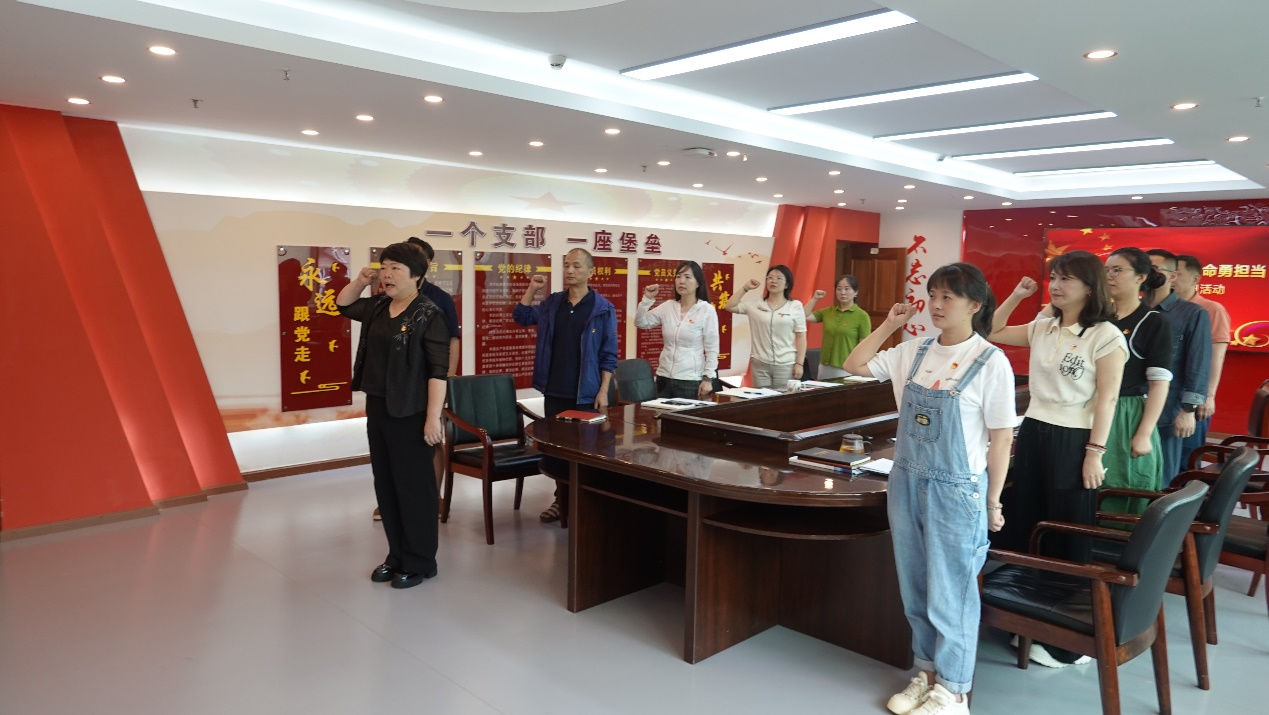 再次,支部全体党员在谭永凤书记的带领下,面向鲜红的党旗,重温入党誓词。上半年入党的党员同志分享了个人入党时的经历与感悟。