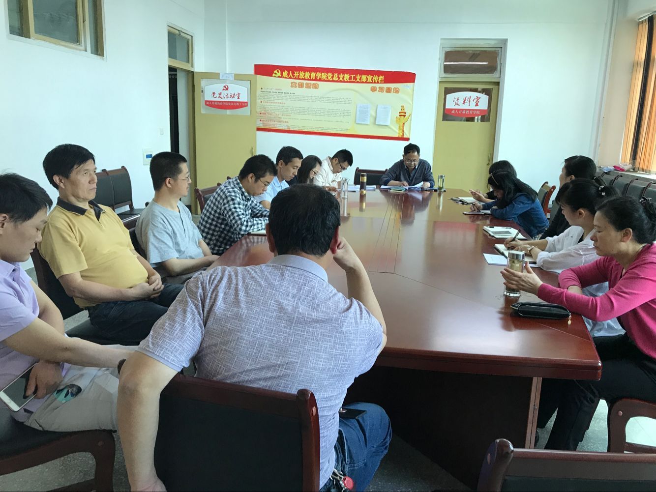 5月18日上午9点,开放教育学院全体职工在三楼党员活动室集中学习中国共产党贵州省第十二次代表大会精神,会议由郝致清院长主持。