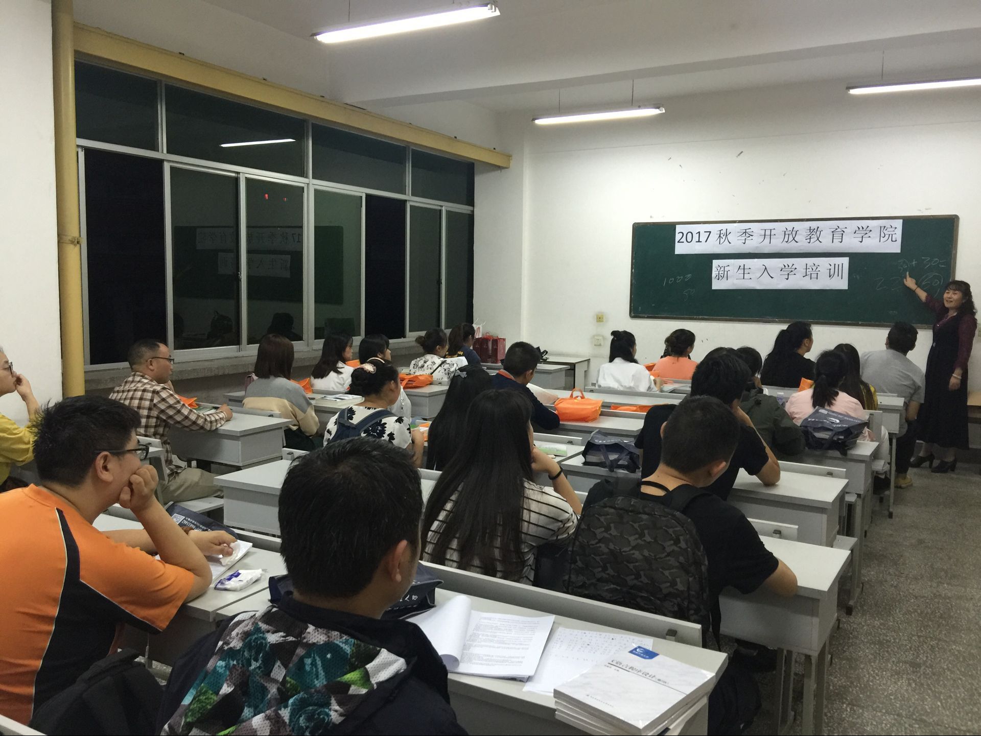 本次新生入学培训由各8位新生班主任分别进行,培训的主要内容是向新生介绍开放教育学院的学习模式、学习过程、学习要求,新生班主任还向学员强调了学习期间的纪律要求和考试规定。