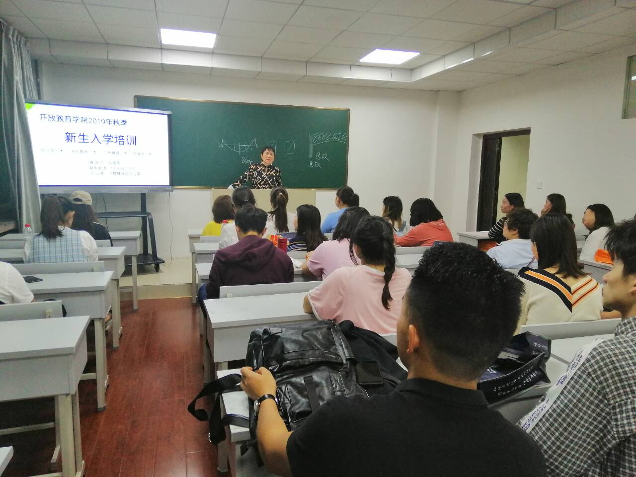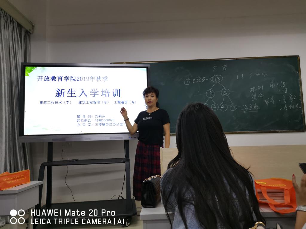 2019年9月28日晚7点,开放教育学院2019年直属班新生入学培训工作在学院AB栋教学楼进行,8名新生班级辅导员为新同学进行了入学培训。