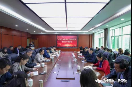 在贵州开放大学即将挂牌之际,为进一步提高开放教育办学质量,推进开放大学建设工作,2021年3月29日上午,学校召开贵州开放大学建设工作调研会,会议由党委书记王爱华主持,党委副书记、校长汤健,党委委员、副校长于立群、汪红出席会议,部分职能部门负责人陪同调研。