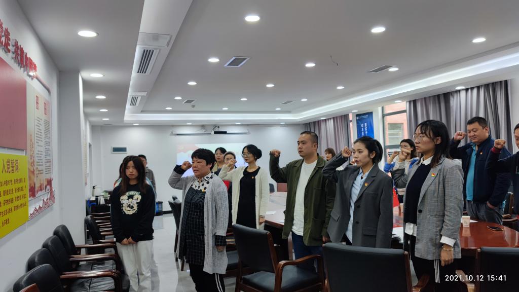 最后,在开放教育党支部书记谭永凤同志的带领下,全场党员同志重温了入党誓词,进一步强化在场党员同志的政治意识、大局意识、责任意识、服务意识和奉献意识。