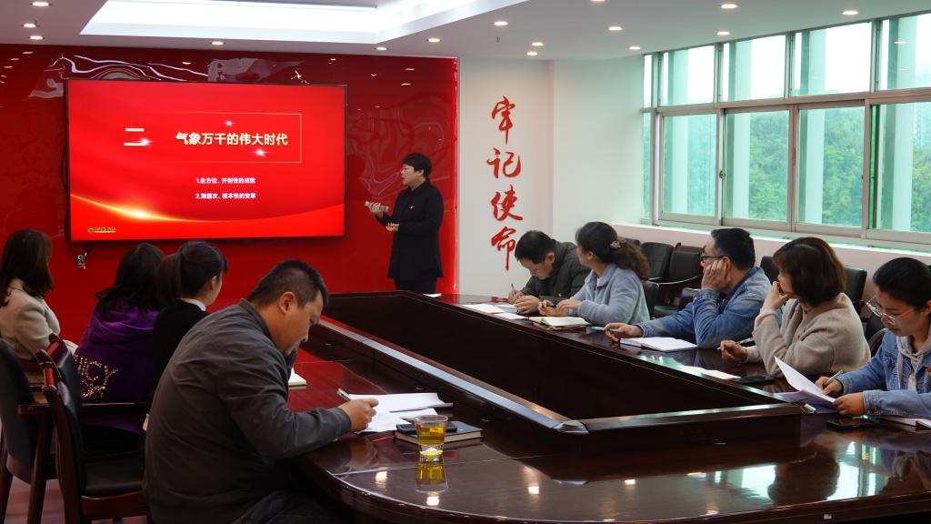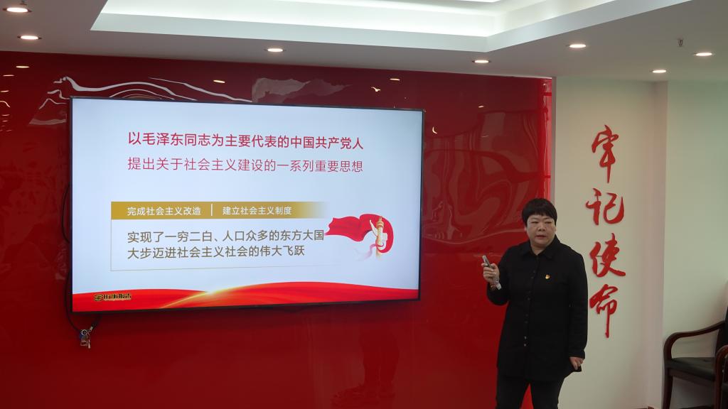 党课上,谭永凤同志结合党的十九届六中全会和党史学习的精神从“不可逆转的复兴进程”、“气象万千的伟大时代”、“伟大光荣的历史贡献”、“开创未来的行动指南”四个方面作了专题讲解。总结了党的百年奋斗重大成就和历史经验,党的一代代领导集体,带领新中国从“站起来”到“富起来”一直到现在“强起来”,也为新时代我们党继续带领人民走向繁荣富强指明了方向。并强调要深刻理解、准确掌握十九届六中全会精神的丰富内涵与核心要义,切实把十九届六中全会精神落实到具体的工作行动上,以立德树人为工作首要目标,认真学习,不断提高学识修养,践行教师的职业道德规范。