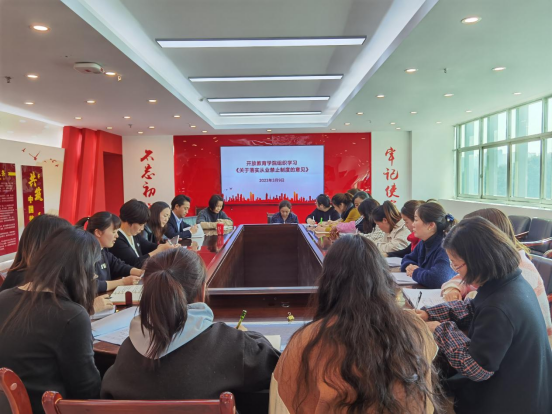 2023年3月9日,开放教育学院召开学习会议,组织全体教职工及时传达学校人事处《关于组织学习<关于落实从业禁止制度的意见>的通知》。