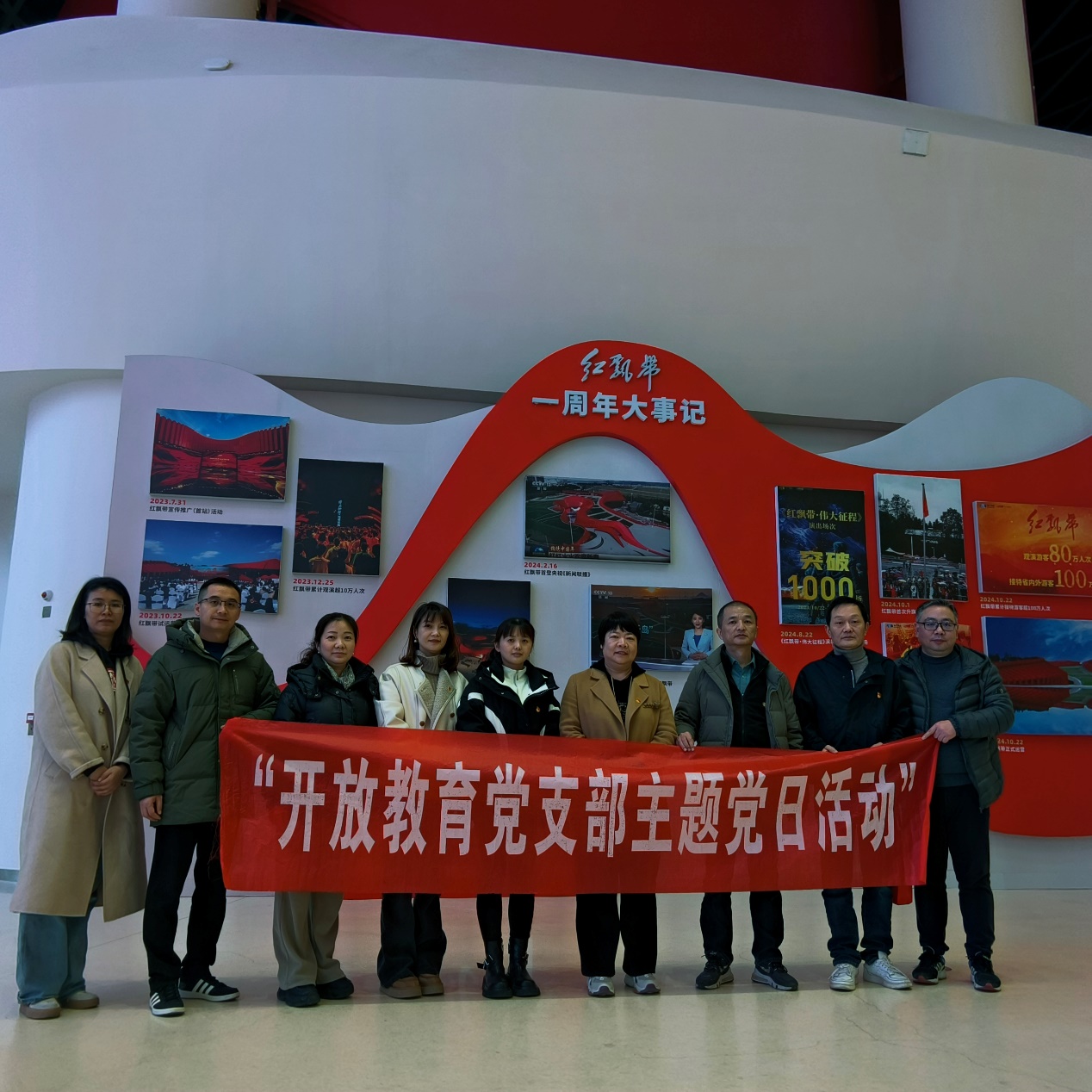 为丰富基层党组织组织生活形式和内容,增强基层党组织的创造力、凝聚力和战斗力,开放教育党支部以党建工作样板支部建设为契机,切实做到党建、业务双融合、双促进,充分发挥基层党支部战斗堡垒作用,树立党员先锋模范旗帜,以提升育人实效,促进开放教育提质增量为目标,以党建为引领,全面加强自身建设,于2024年12月18日组织支部全体党员及教师代表开展了“踏上伟大征程,感受伟大精神”主题党日活动,参观了贵州长征数字科技艺术馆“红飘带”。“红飘带”是以“长征路线图”作为创作思路,用数字科技的语言向世界讲述长征故事,传承红色基因。