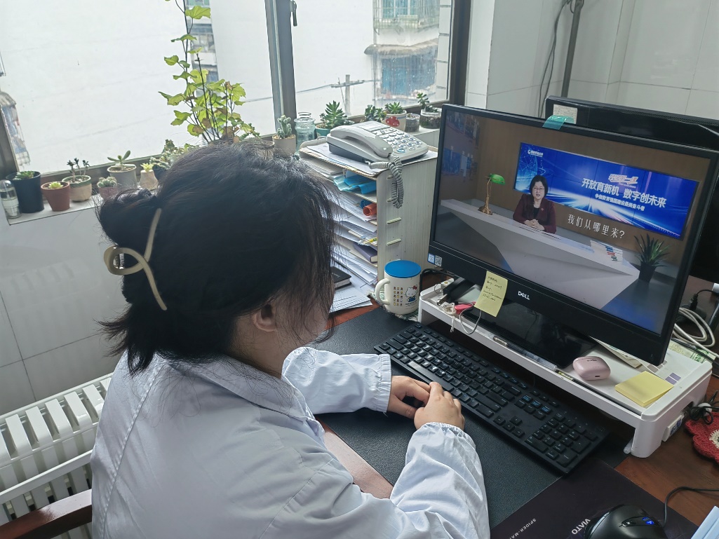 2025年2月24日上午10点,开放教育学院全体教职员工齐聚八鸽岩校区综合楼三楼会议室,通过国家开放大学直播平台收看了以“开放育新机 数字创未来——争做教育强国建设最美奋斗者”为主题的2025年春季学期国家开放大学“开学第一课”,本次“开学第一课”由国家开放大学党委委员、副校长范贤睿主讲,聚焦教育数字化转型,深入探讨教育强国建设的实践路径。