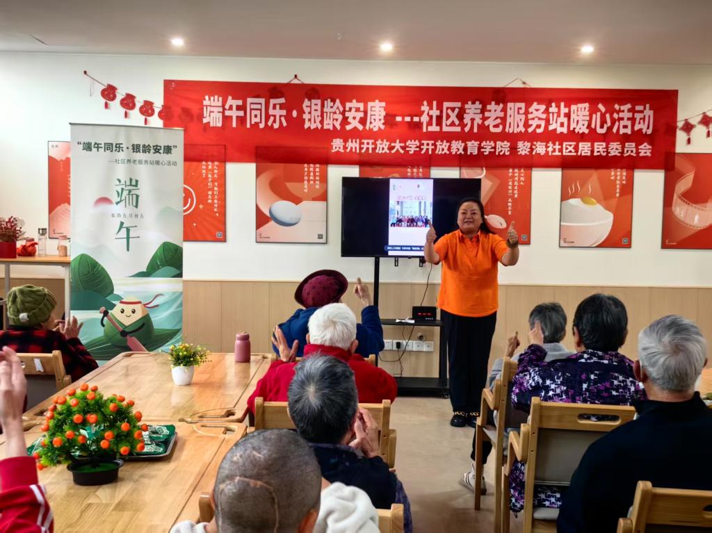 5月30日下午,贵州开放大学开放教育学院师生走进黎海黎苑社区养老服务站,联合社区居委会举办“端午同乐·银龄安康”主题实践教学活动,通过文化体验与实践教学融合,为社区老人送上暖心服务与专业陪伴。
