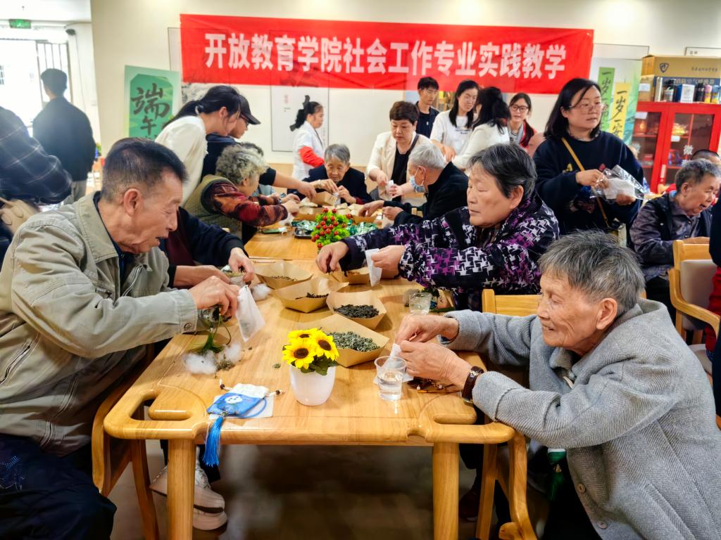 本次活动是开放教育学院深化实践教学的重要一课。学院注重将课堂知识转化为服务社会的能力,精心设计此次社区实践,让学生在真实场景中运用“观察、倾听、尊重”的专业方法,将香囊制作、沟通陪伴、照护知识学习等环节转化为生动的实践课堂。活动既为 20 余位独居、空巢老人提供陪伴,也让学生在真实场景中践行社会工作 “助人自助” 理念实现了专业成长与人文关怀的双重提升。